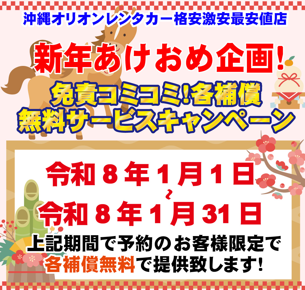 レンタカー料金すべて禁煙車+ナビ+ETC付きです PRICE MENU ハイシーズン期間 年末年始【12/25〜1/5】GW【4/27〜5/6】夏季【7/6〜8/31】SW【9/14〜9/23】 キャンペーン令和8年1月1日~令和8年1月3...